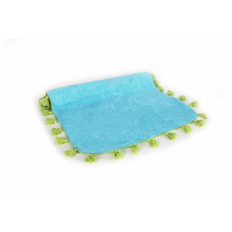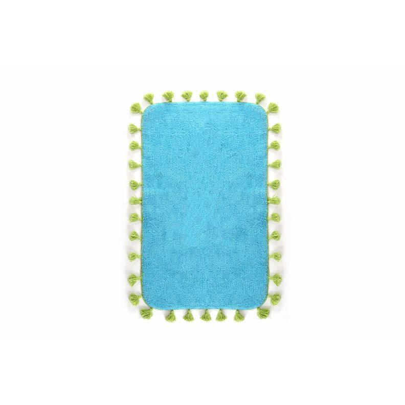 Коврик голубого цвета с декоративными кистями станет интересным акцентом в ванной комнате. Мягкий натуральный ворс из 100% хлопка обеспечит вам уют и комфорт.