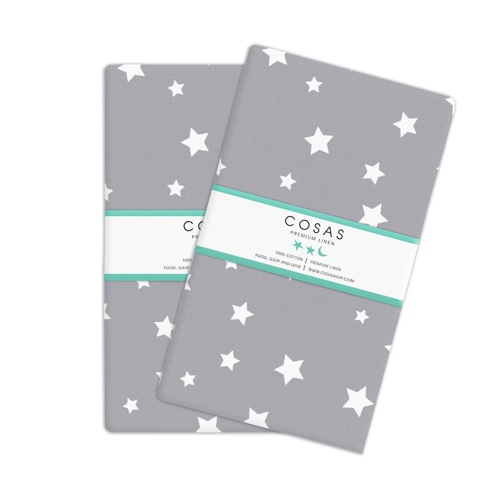 Замечательный набор из двух бязевых наволочек серого цвета с красивым рисунком звезд. Наволочки выполнены из натуральной хлопковой ткани, подарят вам уют и комфорт во время сна, замечательно дополнят интерьер спальни.