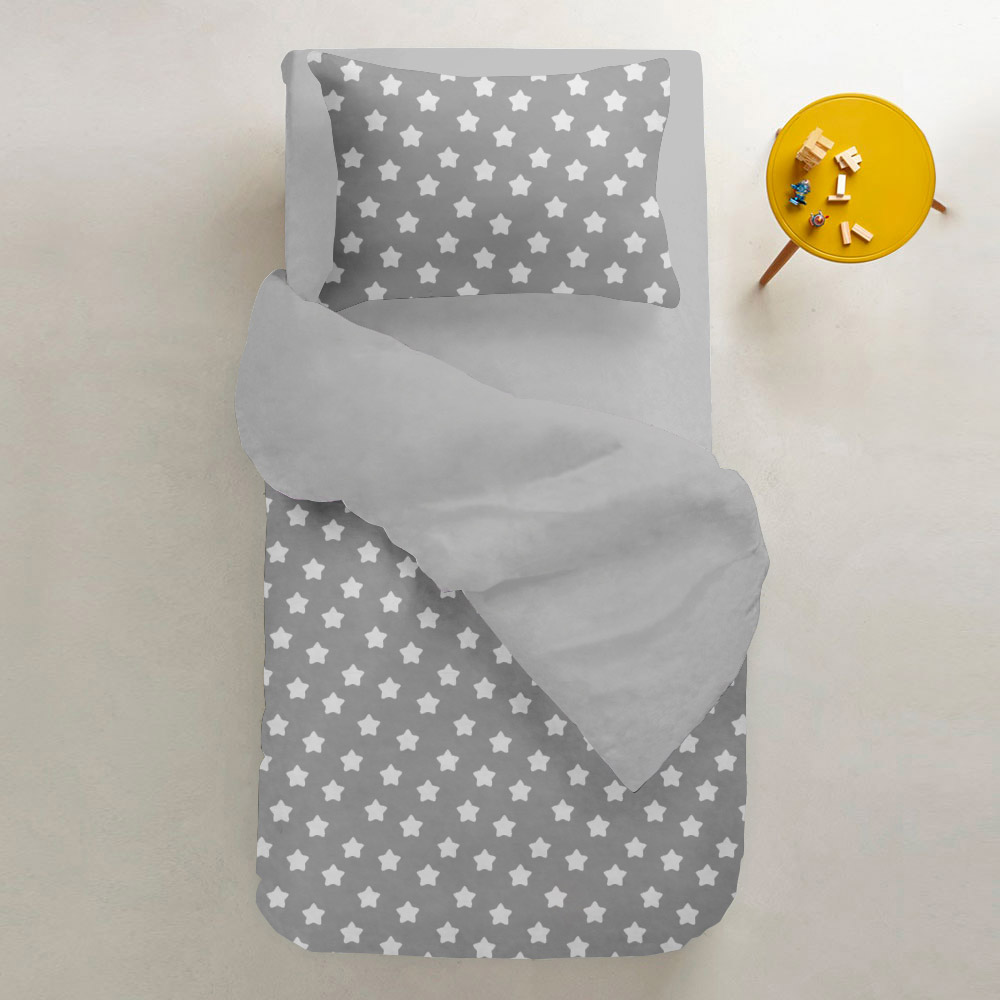 Бязевая наволочка серого цвета с красивым рисунком звезд. Наволочка отлично дополнит интерьер спальни. Натуральная хлопковая ткань подарит вам уют и комфорт во время сна.
