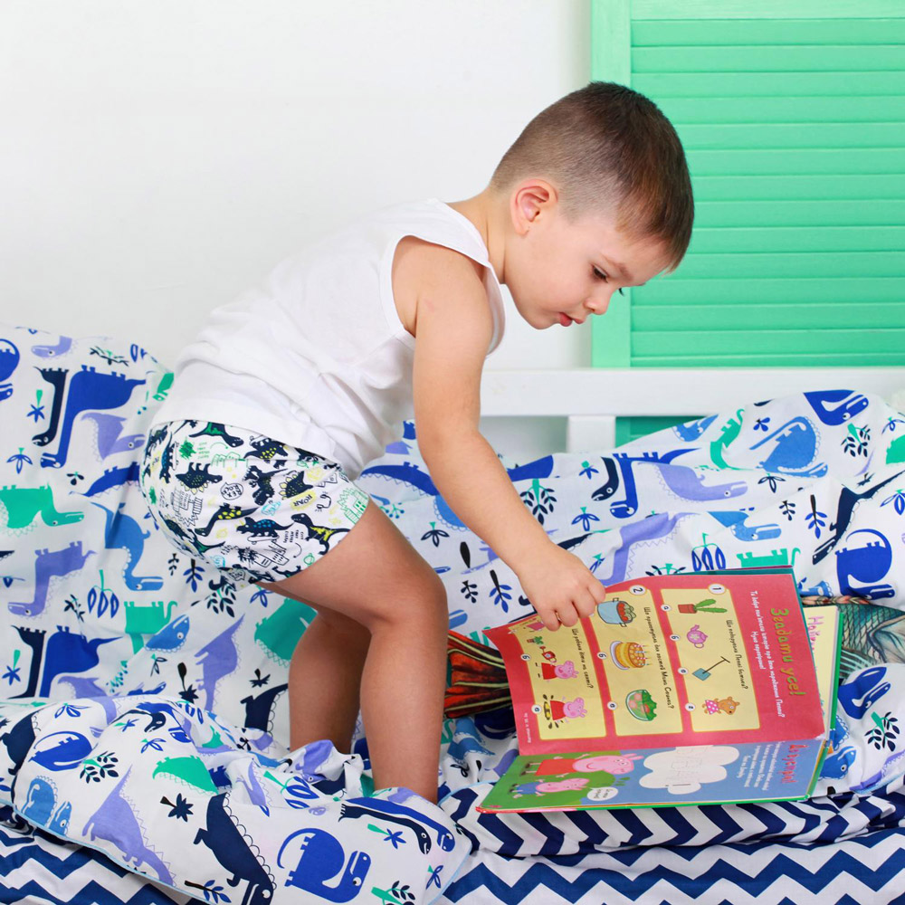 Подростковый пододеяльник Cosas Дино синий зигзаг 4. Пододеяльник белого цвета декорирован разными принтами: внутри синий зигзаг, а снаружи динозавры оттенков синего. Изделие гипоаллергенно. Ткань в меру плотная, приятная к телу. Будет поддерживать оптимальную температуру. Подойдет для чувствительной кожи.