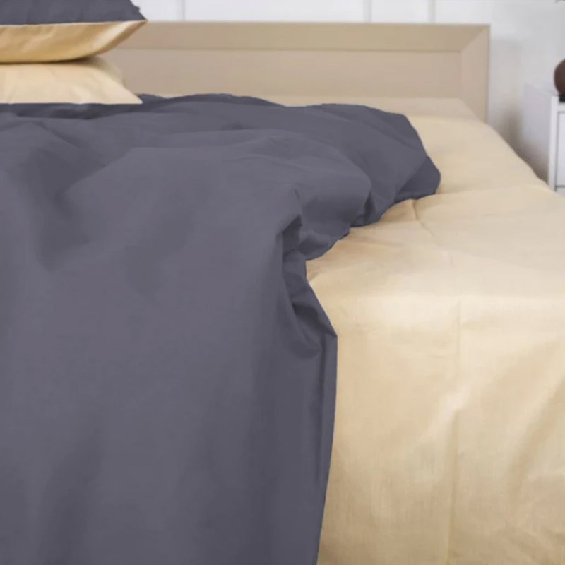 Пододеяльник из бязи сочетает практичность и красивый двухцветный дизайн. Одна сторона изделия - серого цвета, другая - бежевого цвета. Натуральная хлопковая ткань легкая и приятная на ощупь, обеспечивает комфортный сон. Такой пододеяльник станет отличным выбором для создания уютной атмосферы в вашей спальне.