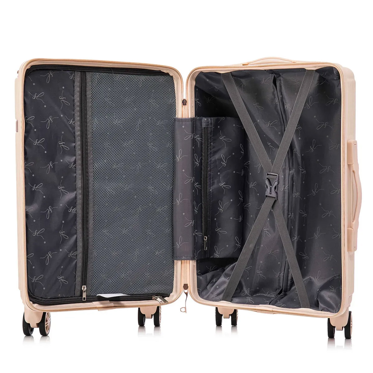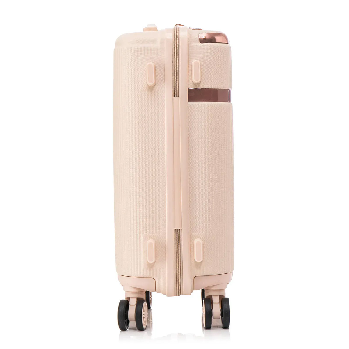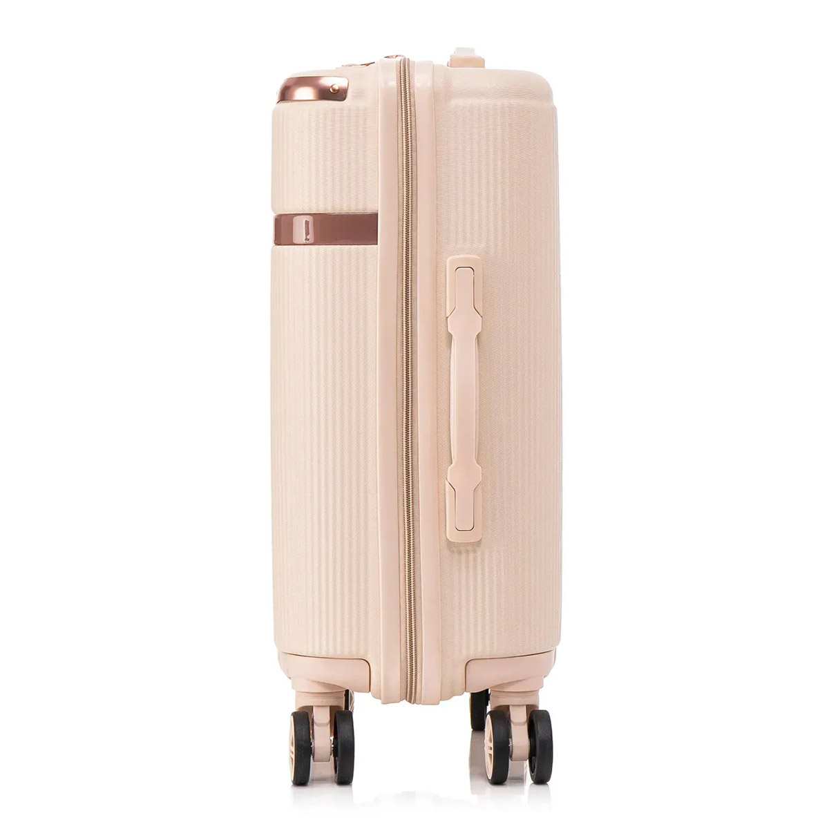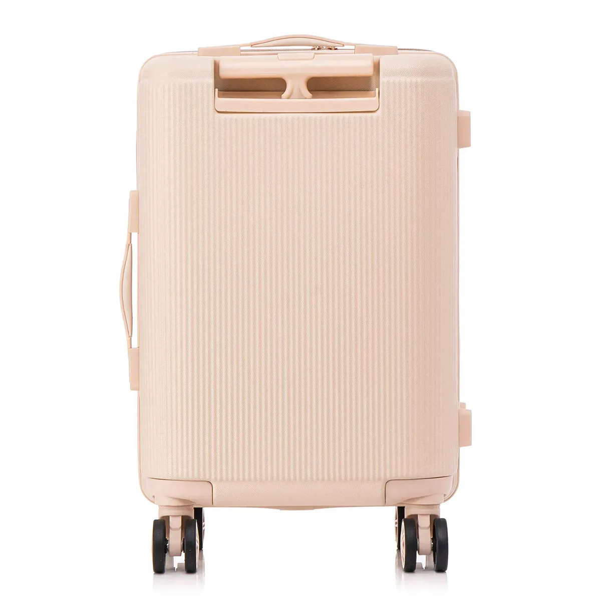 Чемодан отличается элегантным дизайном с облегчённой одинарной телескопической ручкой, мягкими боковой и верхней ручками для удобной транспортировки и утопленным кодовым замком, расположенным сверху. Четыре одинарных колеса вращаются на 360° и закреплены в четырёх точках для повышенной прочности и устойчивости. Внутри предусмотрены перегородки с двумя карманами на молниях, которые помогают удобно разместить вещи. Чемодан соответствует требованиям к ручной клади большинства авиакомпаний.