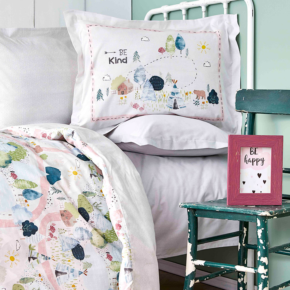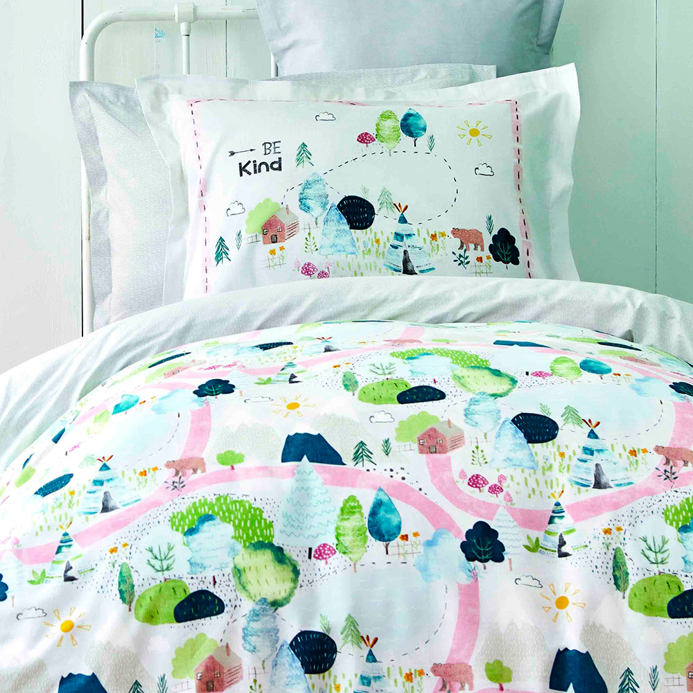 Натуральное подростковое постельное белье в зеленых тонах с захватывающими лесными дорожками. Комплект украсит комнату ребенка и подарит комфортный и здоровый сон.