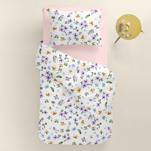 Детская наволочка с симпатичным разноцветным принтом с цветами, птичками, бабочками и грибочками. Наволочка выполнена из ранфорса. Материал из 100% органического хлопка, мягкий и приятный на ощупь, безопасный для чувствительной детской кожи, обеспечит ребенку комфортный сон и отдых.