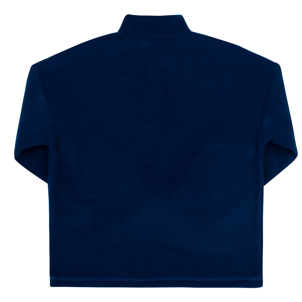Однотонный джемпер темно-синего цвета с длинными рукавами, воротником-стойкой и застежкой-молнией на груди. Модель подойдет для мальчика. Джемпер выполнен из качественной флисовой ткани. Материал мягкий на ощупь, приятный и комфортный, теплый, практичный, идеально подойдет для холодов.