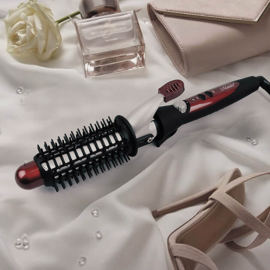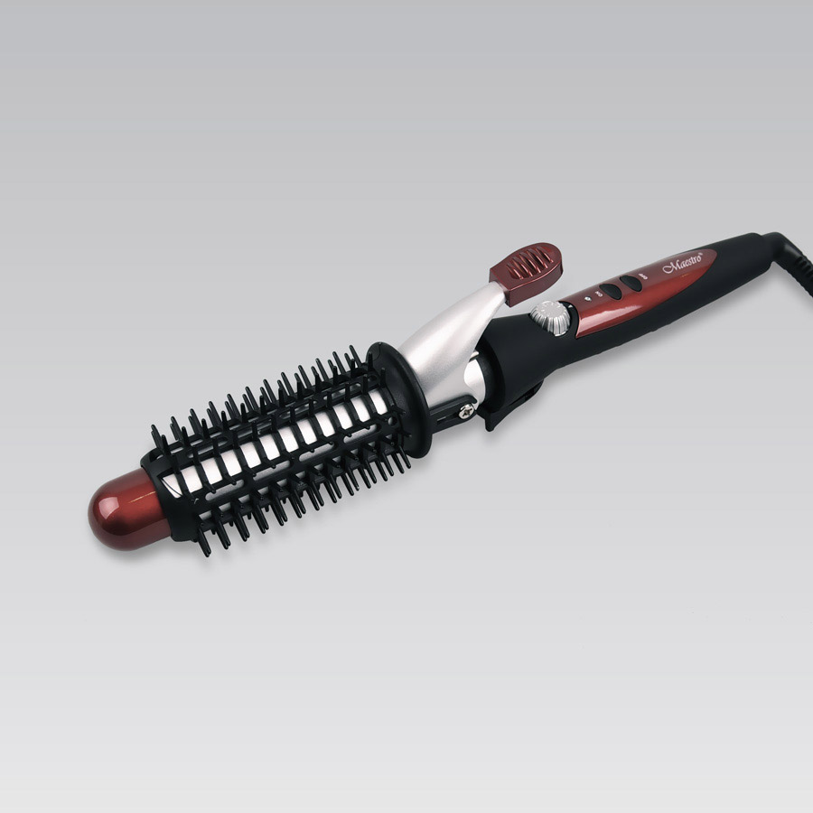 Плойка красно-черного цвета. Модель представляет собой стильное и современное решение для эффективного ухода за волосами, подходит для любой длины волос. Модель дополнена насадкой-расческой. Керамический нагревательный элемент обеспечивает быстрый и равномерный нагрев. Есть регулятор температуры (от 120 до 200 градусов), а также светловой индикатор работы. Шнур вращается на 360 градусов для удобства использования.