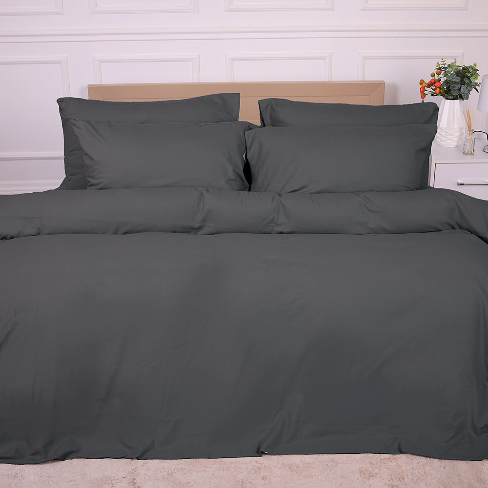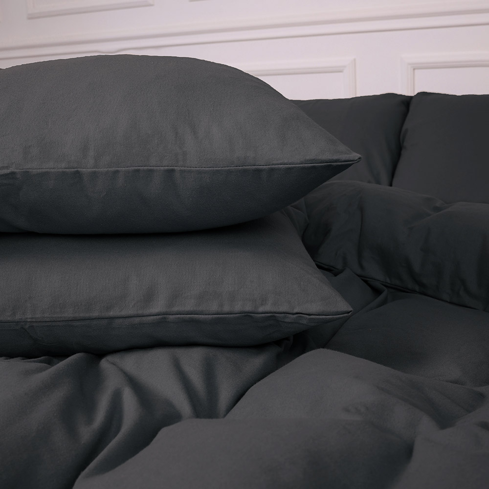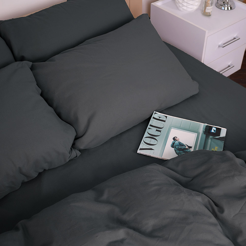 Однотонное постельное белье темно-серого цвета. Комплект выполнен из фланели, станет идеальным выбором для тепла и комфорта в холодное время года.