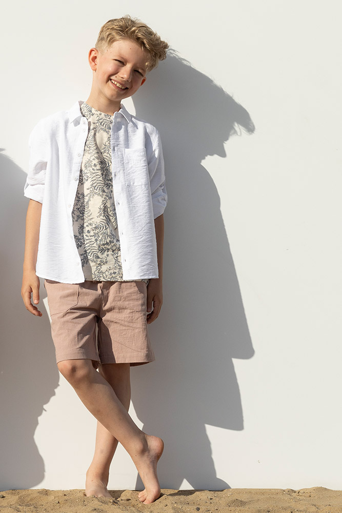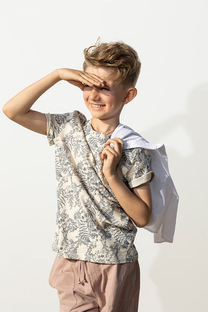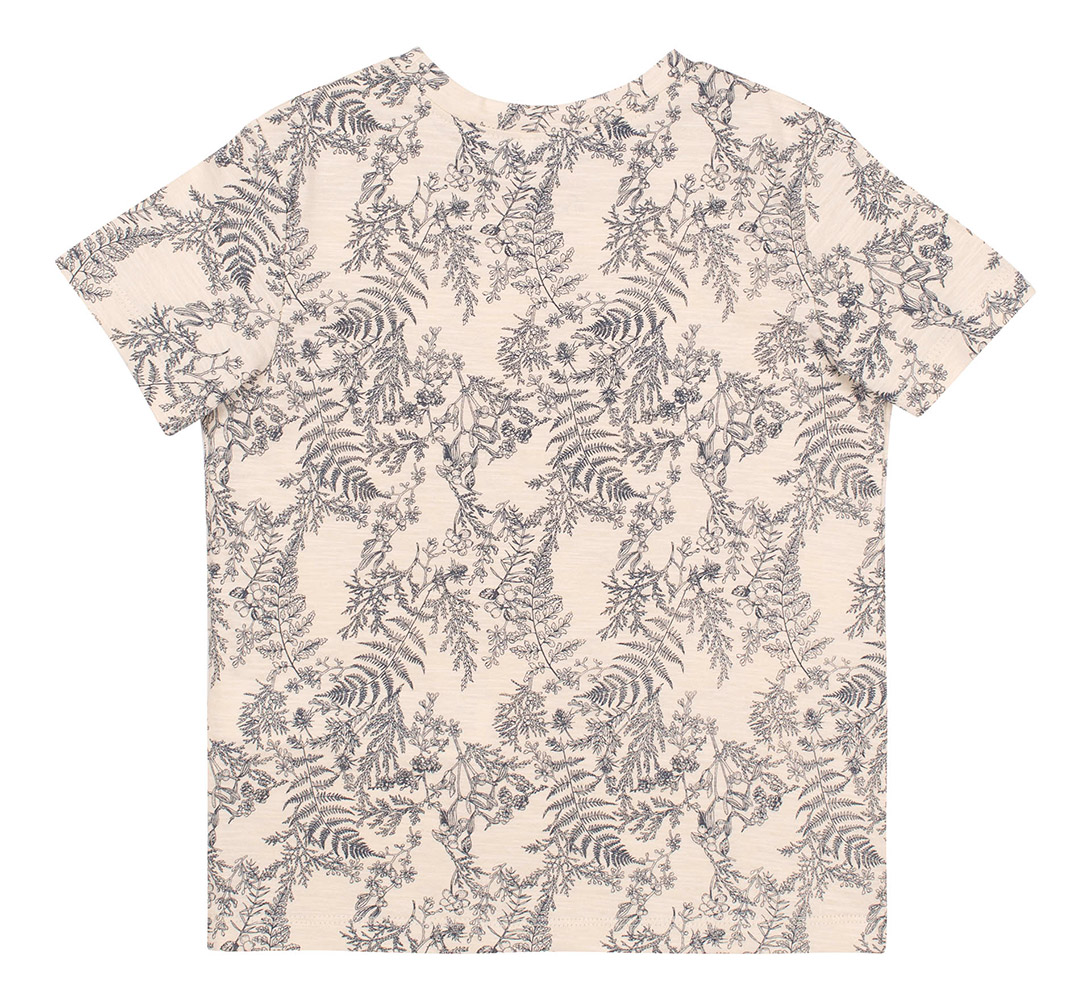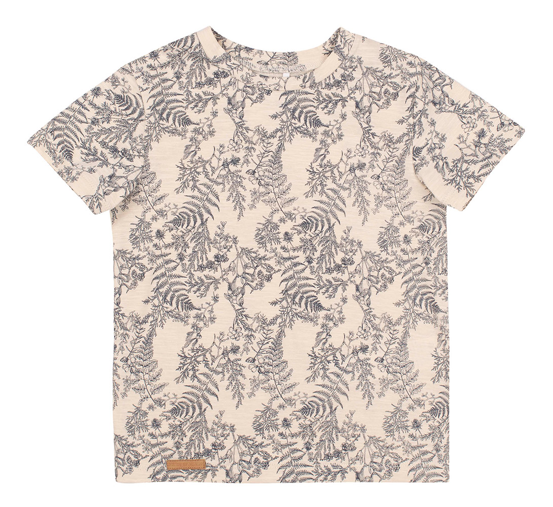 Футболка молочного цвета с красивым растительным принтом. Модель подойдет для мальчика. Футболка прямого кроя, с круглой горловиной и с короткими рукавами. Футболка выполнена из ткани супрем. Хлопковый материал легкий, мягкий и приятный на ощупь, хорошо пропускает воздух, идеально подходит для детской кожи.