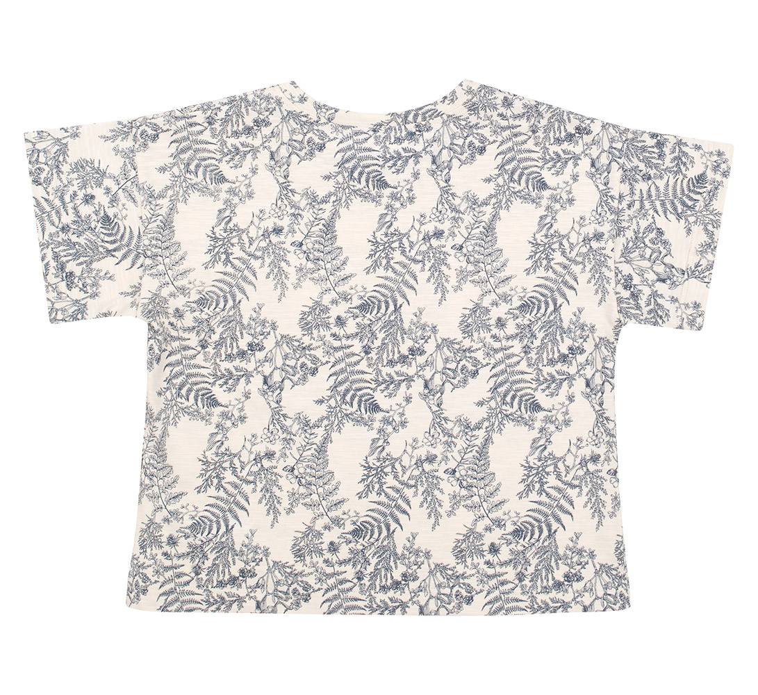 Футболка молочного цвета с красивым растительным. Модель подойдет для девочки. Футболка прямого кроя, с короткими рукавами и с круглой горловиной. Футболка выполнена из ткани супрем. Хлопковый материал легкий, мягкий и приятный на ощупь, хорошо пропускает воздух, идеально подходит для детской кожи.