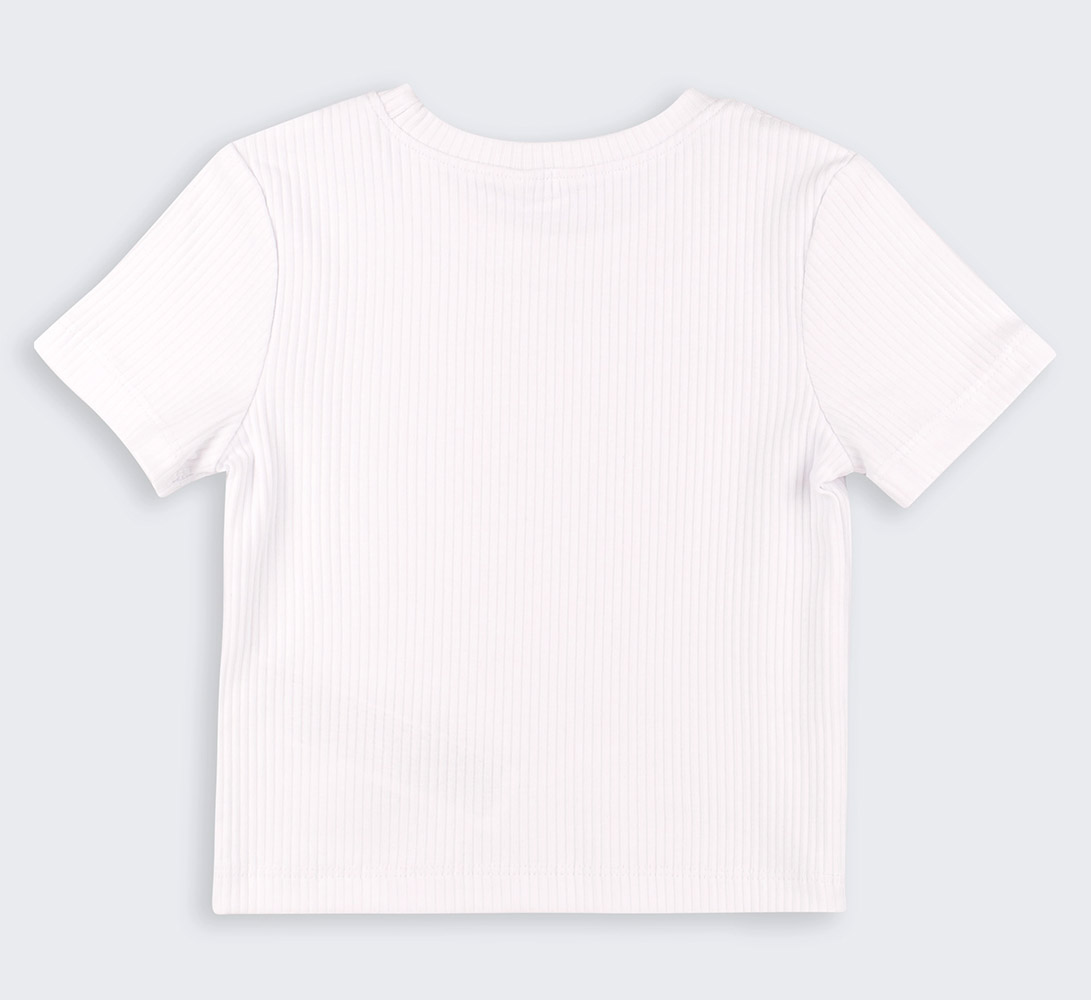 Однотонная базовая футболка белого цвета. Модель с короткими рукавами и круглой горловиной. Футболка выполнена из ткани трикотаж-рубчик с рельефными полосками. Хлопковый материал мягкий и приятный на ощупь, отлично пропускает воздух, обеспечивает максимальный комфорт для ребенка.