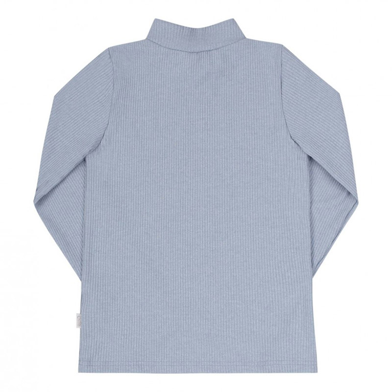 Однотонный гольфик голубого цвета. Гольф универсальный, подойдет и для мальчика, и для девочки. Модель с воротником-стойкой и длинными рукавами, выполнена из ткани шардон-качкорса в рубчик. Материал приятный и комфортный, практичный, идеально подойдет на прохладное время года.