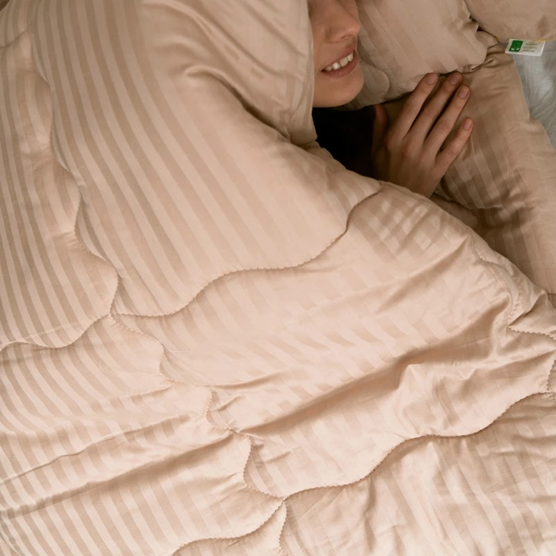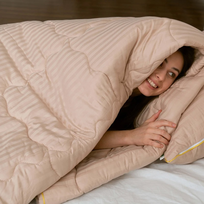 Превосходное легкое и тонкое одеяло — идеальный вариант для лета. Одеяло с наполнителем из натурального хлопка и полиэфирного волокна. Хлопковый наполнитель хорошо поглощает и отводит излишки влаги, не парит, не вызывает аллергии. Наполнитель равномерно распределен и простеган по всему одеялу. Ткань верха — высококачественный нежный сатин бежевого цвета с красивыми жаккардовыми полосками. Ткань премиум-класса, гладкая и шелковистая, производится из 100% хлопка, смотрится элегантно и красиво. Преимущества одеял из серии Handmade: ручная сортировка наполнителя, ручной пошив, качественные материалы, итальянские ткани, тщательный контроль качества.