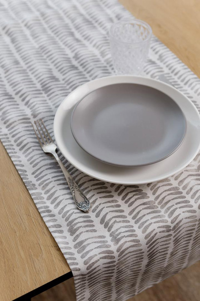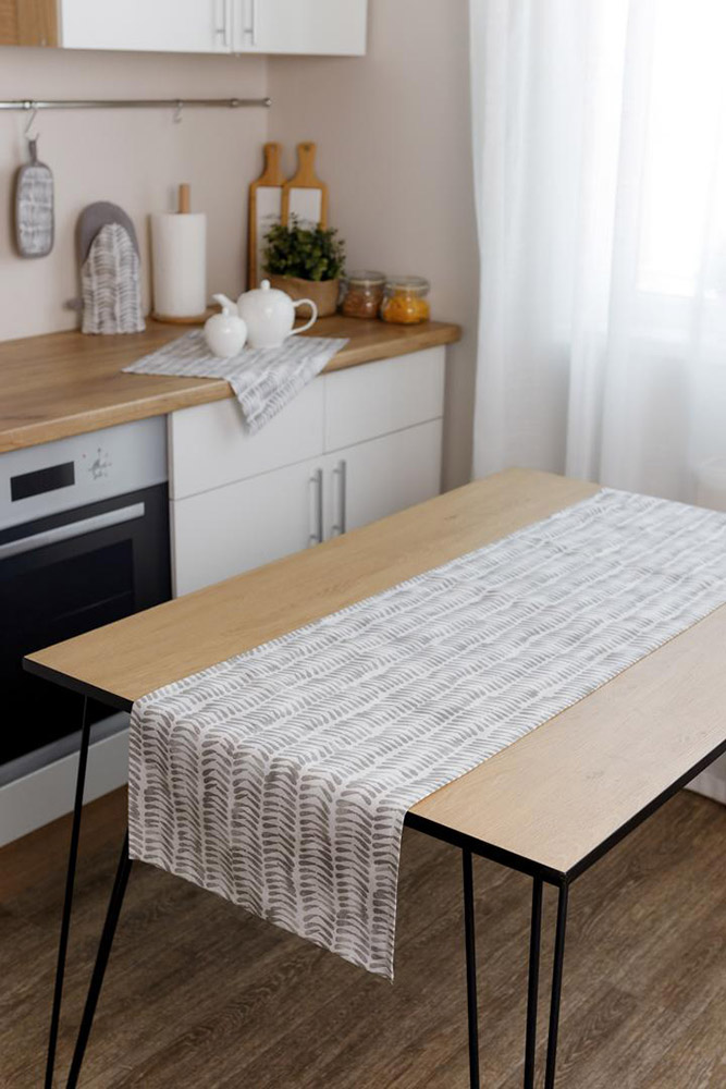 Дорожка из коллекции "Раф" серых оттенков с красивым принтом, смотрится стильно в интерьере, замечательно дополнит праздничный стол. Качественная ткань из натурального хлопка прослужит вам долгое время, сохранив первоначальный цвет и вид.