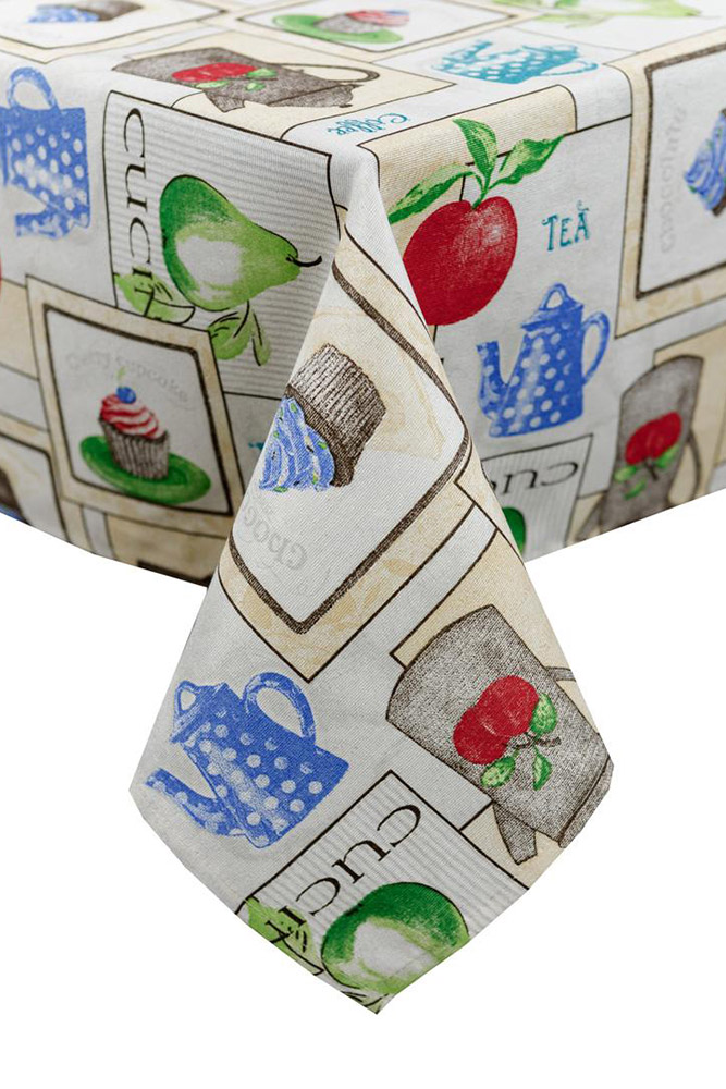 Качественная хлопковая скатерть с симпатичным разноцветным принтом. Скатерть станет красивым акцентом в комнате. Ткань из хлопка и полиэстера прослужит вам долгое время, сохранив привлекательный внешний вид.