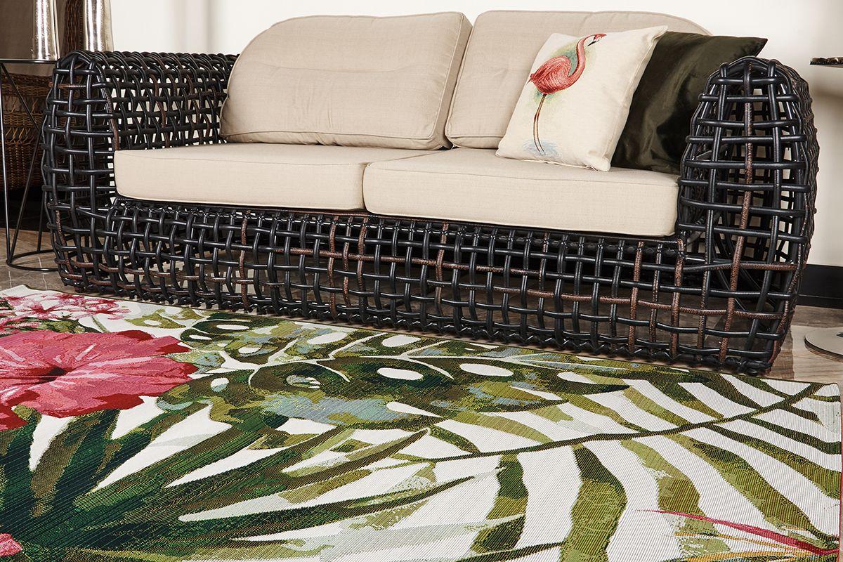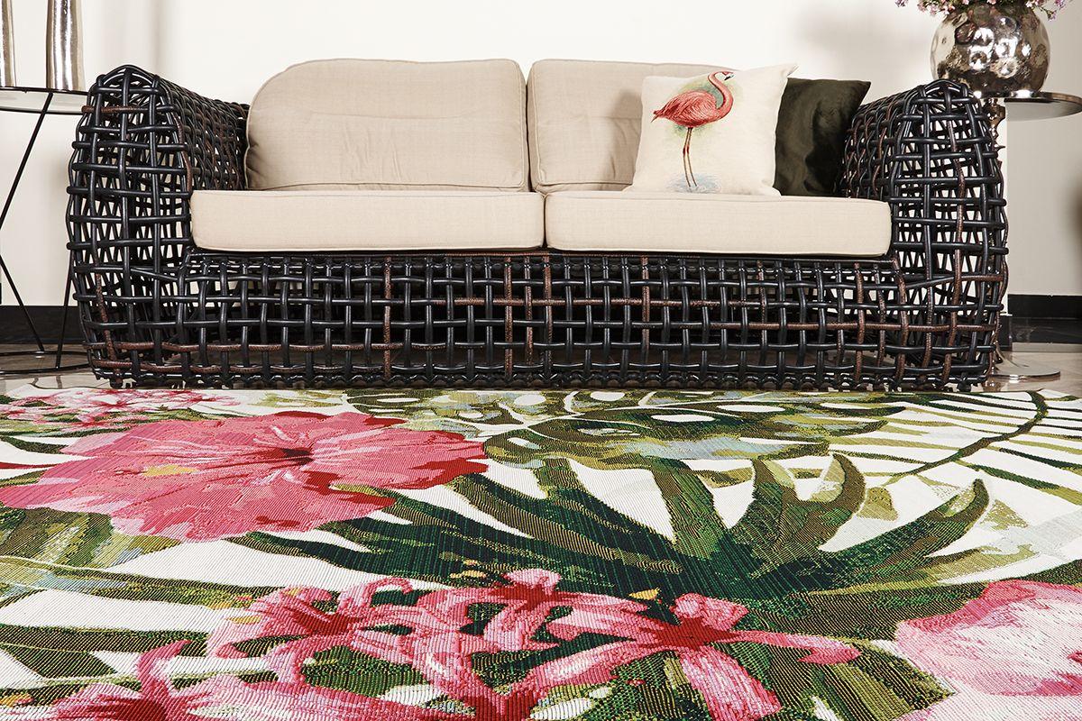 Прямоугольный ковер с цветочным узором, предназначенный для оформления открытых пространств. Жесткая структура исключает деформирование полотна и истирание поверхности. Синтетические нити не впитывают влагу и грязь, ковер можно стелить на влажную траву, песок и тротуарную плитку.