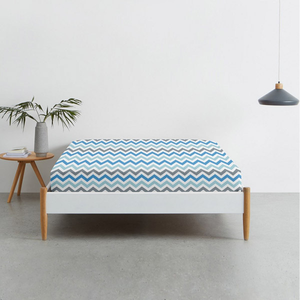 Простынь с симпатичным принтом с голубыми и серыми зигзагами. Простынь выполнена из ранфорса. Материал из 100% органического гипоаллергенного хлопка, мягкий и приятный на ощупь, обеспечивает комфортный сон и отдых.