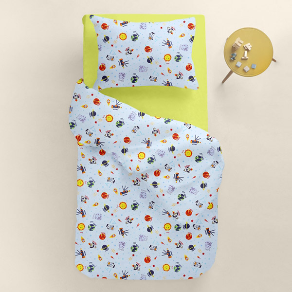 Подростковый пододеяльник из ранфорса. Пододеяльник голубого цвета с космическим принтом. Материал из 100% органического хлопка мягкий и приятный на ощупь, хорошо пропускает воздух, обеспечит комфортный сон и отдых.