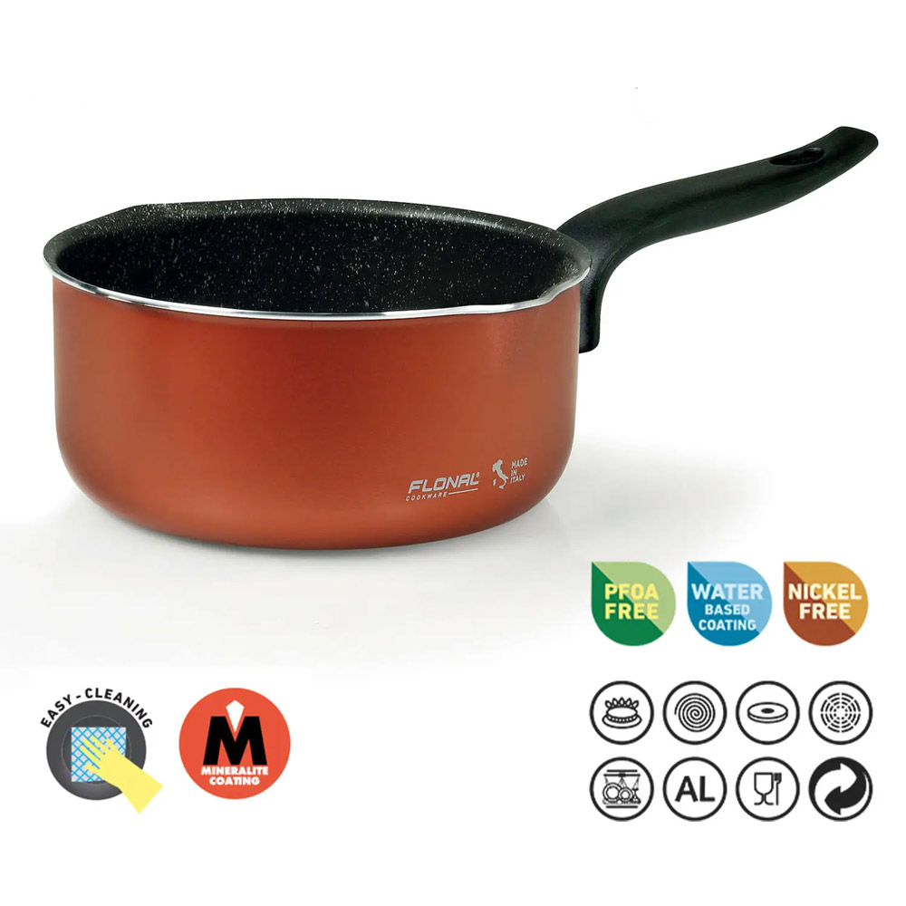 Flonal - итальянский бренд посуды, выделяющийся инновационными технологиями, экологически чистыми покрытиями и стильным дизайном. Продукция изготавливается с использованием высокотехнологичных материалов, таких как холодная ковка алюминия и минеральные антипригарные покрытия, обеспечивая прочность, эффективность и заботу о здоровье.