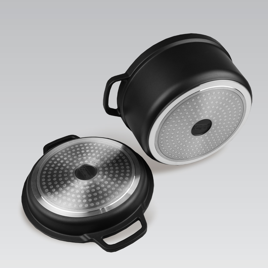 Кастрюля Maestro Cast с крышкой гриль 6,7л MR4128 выполнена из литого алюминия с термостойким покрытием, которое придает антипригарные свойства. Кастрюля имеет крышку, которую можно использовать как сковороду-гриль, что делает подобный набор функциональным и практичным. Сковорода-гриль с индукционным дном позволит готовить различные аппетитные блюда с румяной корочкой. Материал позволяет прослужить посуде долгое время, не подаваясь коррозии, деформации, воздействию высоких температур и обеспечивает равномерный прогрев.