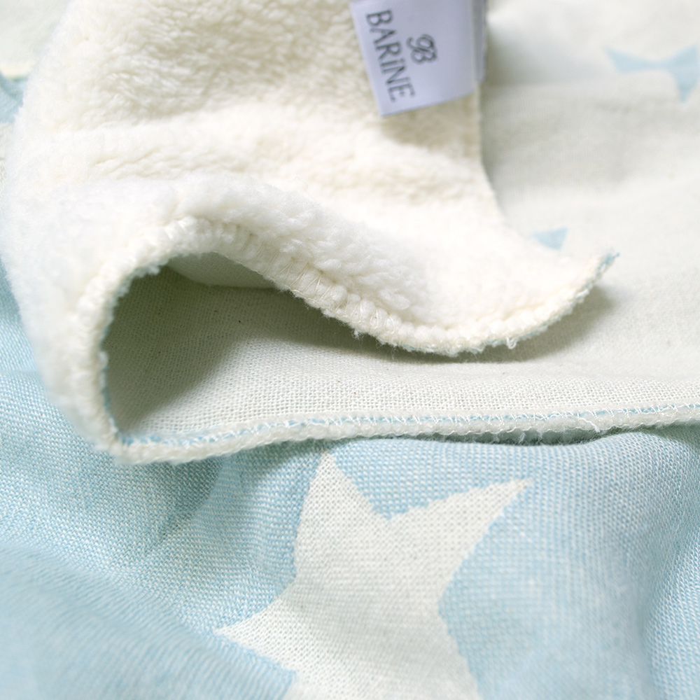 Плюшевый плед ментолового цвета с красивым рисунком звезд. Плед выполнен в технике пэчворк (лоскутное шитье), смотрится очень стильно и оригинально. Изделие освежит интерьер, наполнит дом уютом, подарит вам тепло и комфорт во время отдыха. Одна сторона пледа - это мягкий натуральный хлопок, а другая - теплый и пушистый плюшевый материал.