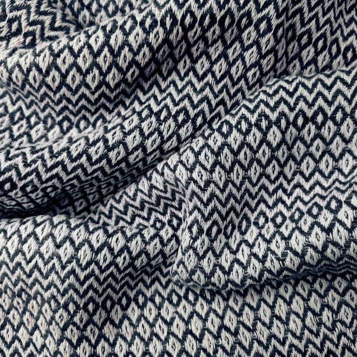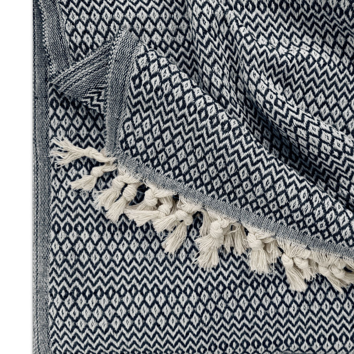 Хлопковый текстурный плед черного цвета с красивым рельефным узором ромбами и с бахромой. Плед выполнен из натуральной хлопковой ткани. Материал мягкий и приятный на ощупь, хорошо пропускает воздух, дарит ощущение уюта и комфорта.