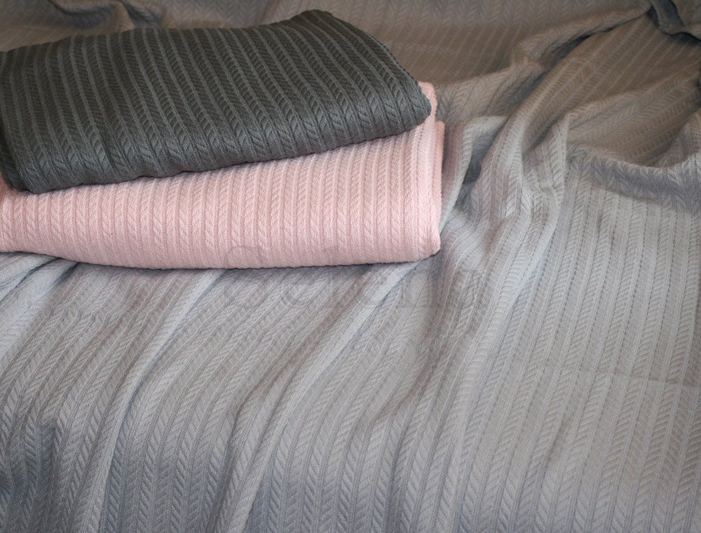 Однотонный плед-простынь светло-серого цвета с красивыми рельефными косичками. Плед выполнен из ткани пике. Материал из натурального хлопка, легкий, мягкий и приятный на ощупь, отлично пропускает воздух, обеспечивает максимально комфортный сон, замечательно подойдет для укрывания летом.