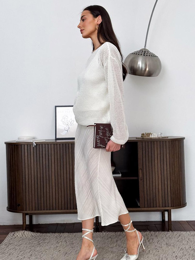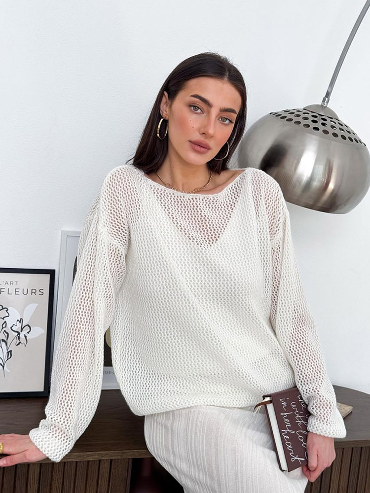 Однотонный джемпер нежного молочного цвета с длинными рукавами. Идеальный выбор для создания стильных и элегантных образов. Модель машинной вязки, свободного силуэта. Легкая и воздушная текстура придает модели особую изящность, а однотонный дизайн делает её универсальной для любого гардероба. Джемпер выполнен из качественной пряжи на основе шерсти и искусственных волокон, сочетает мягкость и практичность.