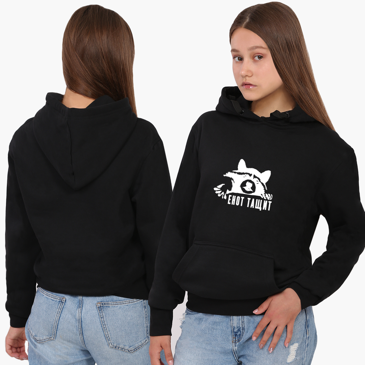 Худи женский Енот Тащит MobiPrint 8921-2049 черный. Толстовка выполнена с капюшоном и карманами спереди, которые называют "кенгуру". Худи отлично сочетается с любой одеждой, создавая разнообразные стильные образы! Он мягкий на ощупь, гипоаллергенный из качественного хлопкового материала с прочными волокнами полиэстера для износостойкости ткани. Для печати используется термопечать, при которой изображение наносится с помощью термопленки. Это позволяет наносить рисунки высокого качества. Изображения, при этом, получаются прочными, не трескаются под воздействием температуры, и при деликатной стирке долго сохраняют свой первоначальный вид.