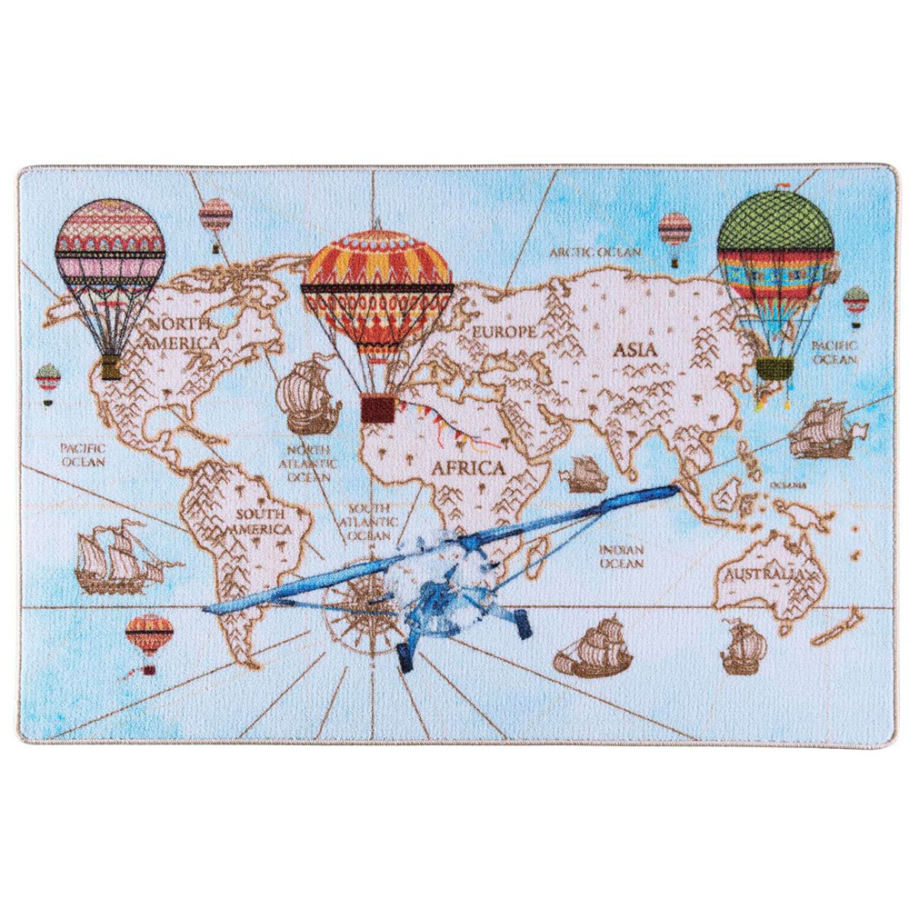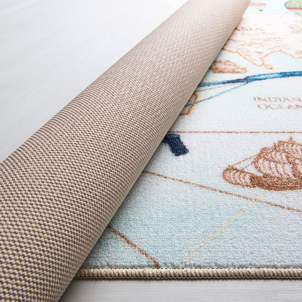 Детский коврик с изображением карты мира станет украшением комнаты. Коврик с нескользящим основанием и мягким приятным ворсом. Выполнен из антиаллергенного материала полиамида, который обладает сверхвысокой износостойкостью и прочностью. В таком коврике не появляются вредные микроорганизмы, бактерии и грибок. Прост в чистке и уходе.
