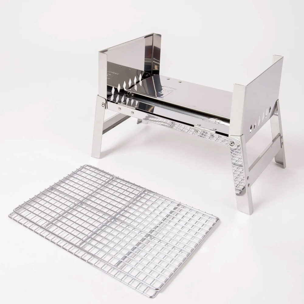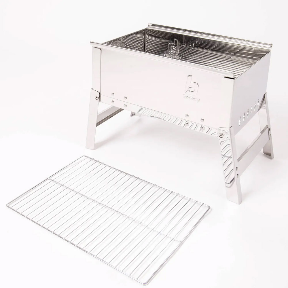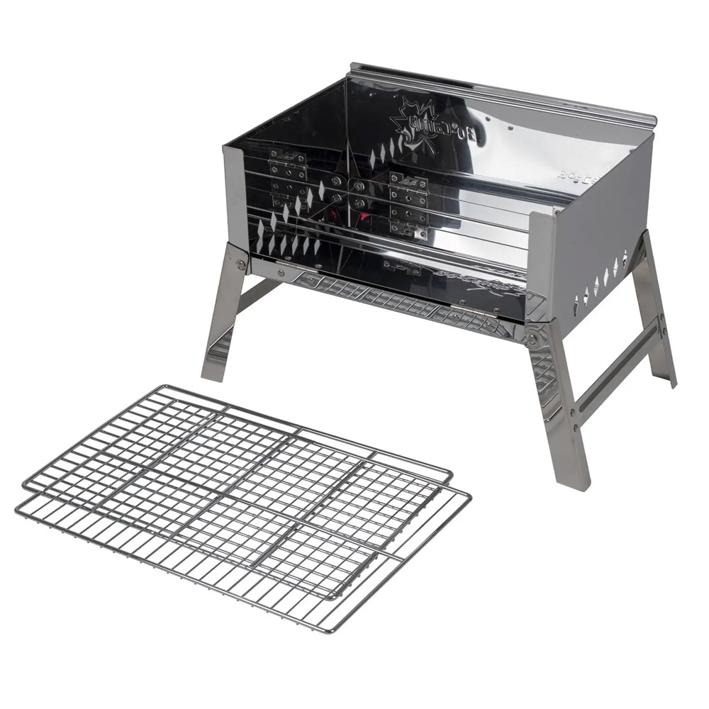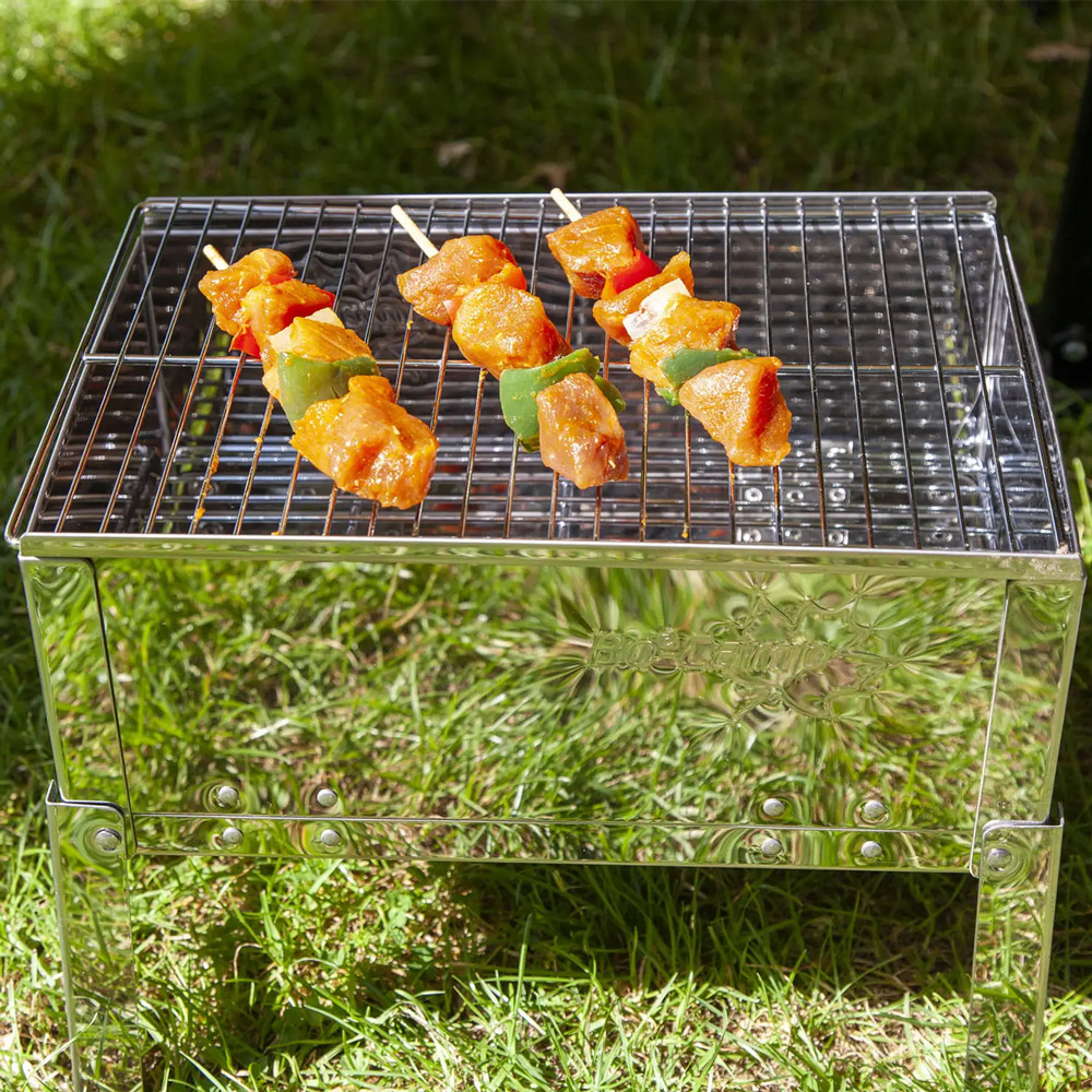 Складной угольный гриль из нержавеющей стали, идеальный для приготовления мяса, рыбы или овощей на природе или во дворе. Он легко раскладывается и уже оснащен решеткой для приготовления блюд. Гриль включает решетку для углей для равномерного горения. Поставляется в удобной картонной коробке для хранения и транспортировки. С весом менее 2 кг, вы легко возьмете его с собой в путешествие или на отдых на природе.