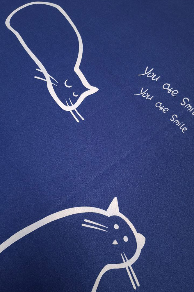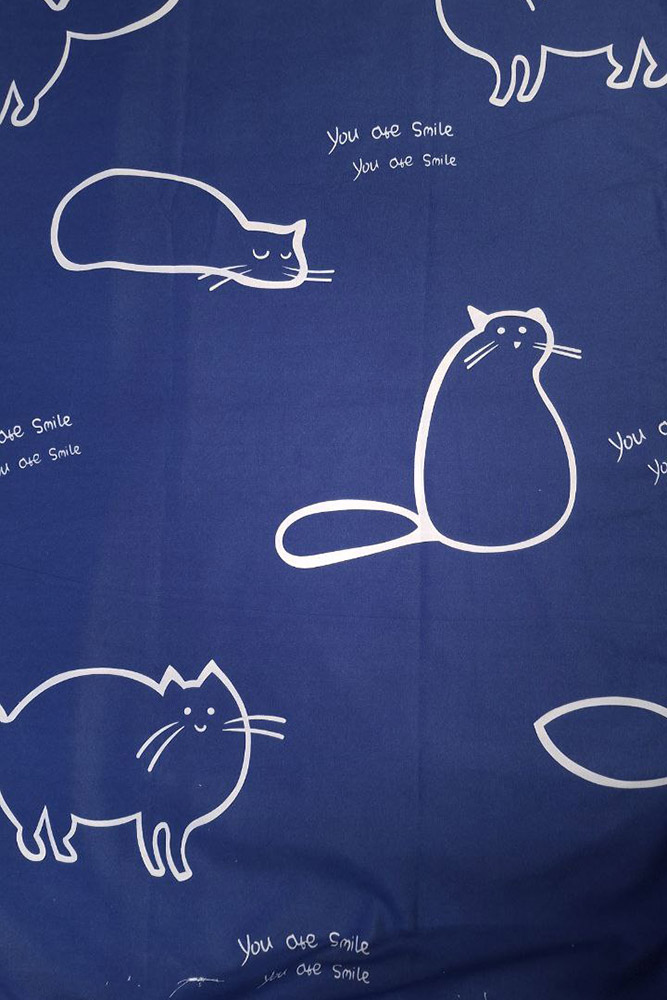 Комплект постельного белья Cat Smile Emily. Постельное белье темно-синего цвета с симпатичным принтом с котиками и надписями. Постельное белье достаточно практично в использовании на каждый день. Оно сшито из качественной микрофибры. Материал приятный на ощупь, не требует особого ухода, прекрасно сохраняет цвет после стирок.