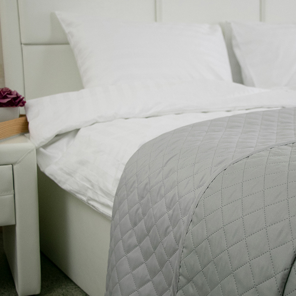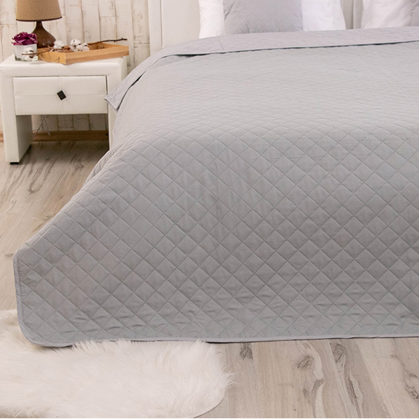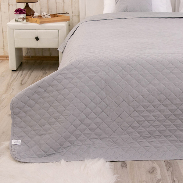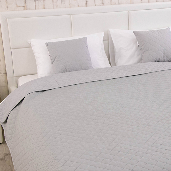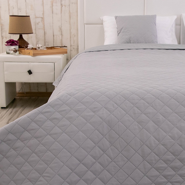 Стильное покрывало серого цвета с ультразвуковой стёжкой ромбами. Покрывало замечательно дополнит современный интерьер. Чехол изделия выполнен из мягкой и приятной на ощупь микрофибры, а в качестве наполнителя используется полиэфирное силиконовое волокно.