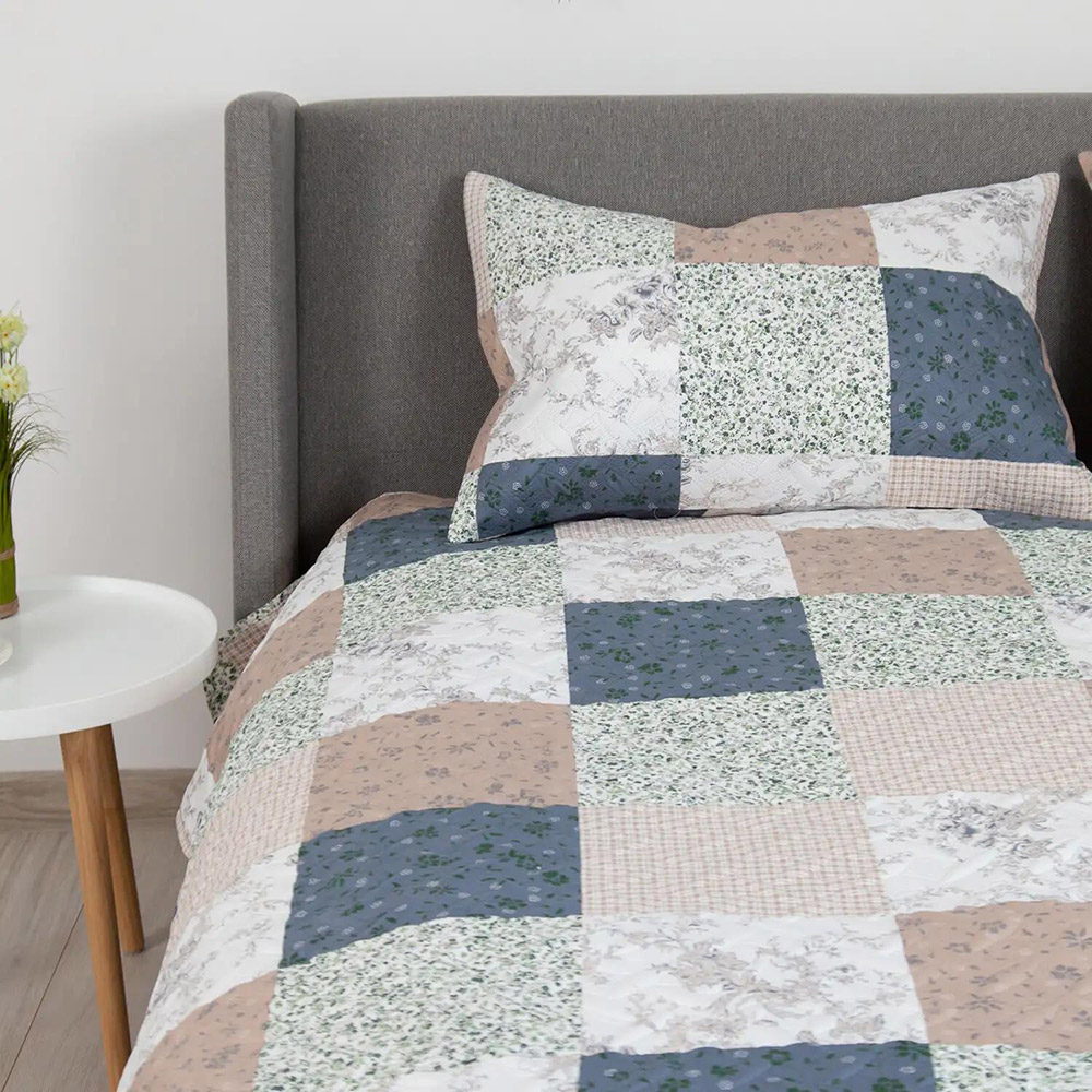 Покрывало с красивым принтом с разноцветным клетками, станет изюминкой интерьера. Покрывало дополнено наволочками. Изделия выполнены из практичной и износостойкой микрофибры, не требуют особого ухода. Благодаря технологии ультразвуковой пайки, наполнитель из полиэфирного волокна не сбивается, надежно зафиксирован внутри покрывала.
