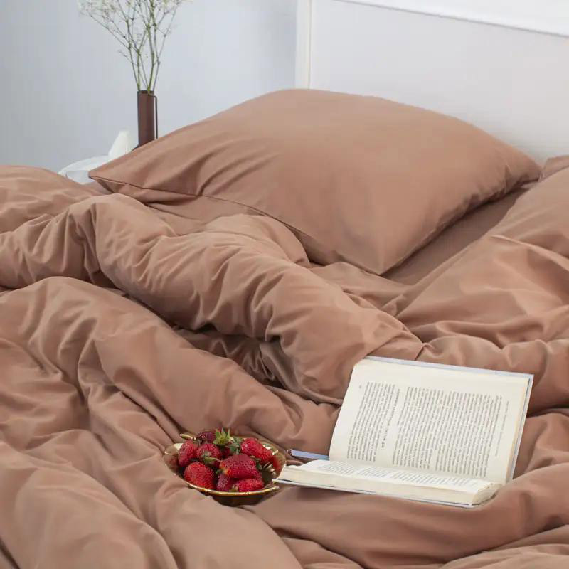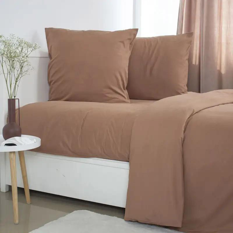 Однотонное постельное бельё из полисатина коричневого цвета — стильный и практичный выбор для тех, кто ценит комфорт и долговечность. Ткань приятна на ощупь, не вызывает аллергии и отличается высокой износостойкостью. Комплект долго служит, сохраняя красивый вид: он выдерживает множество стирок, не требует глажки и не теряет форму. Однотонный коричневый оттенок добавляет уют и гармонично вписывается в любой интерьер.