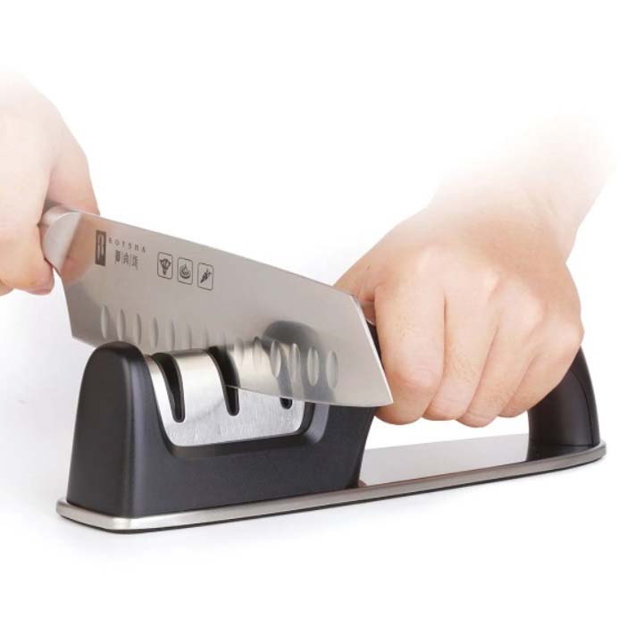 Не используйте точилку для заточки зубчатых лезвий или ножниц. Керамическое колесо может обесцвечиваться – это нормально. Не помещайте точилку в посудомоечную машину.