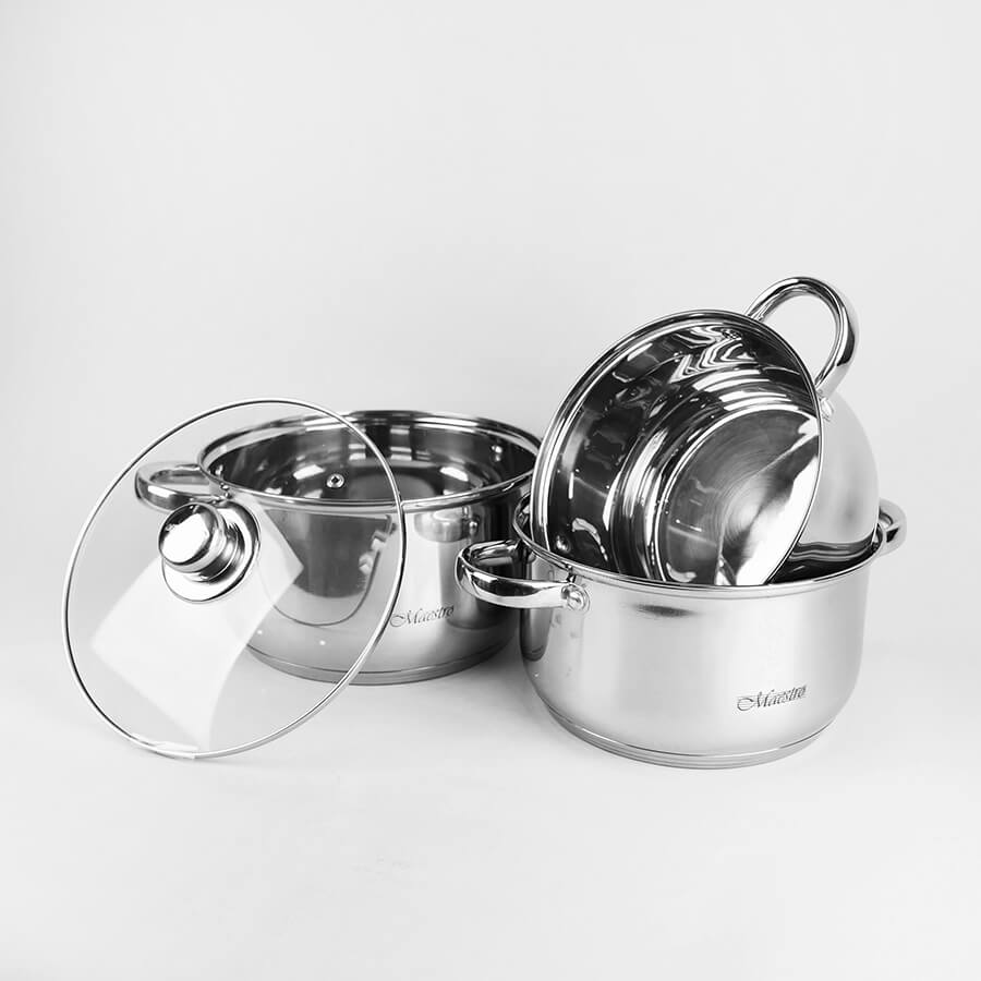 Набор кастрюль с ручками под серебро Maestro MR2020-6M из нержавеющей стали