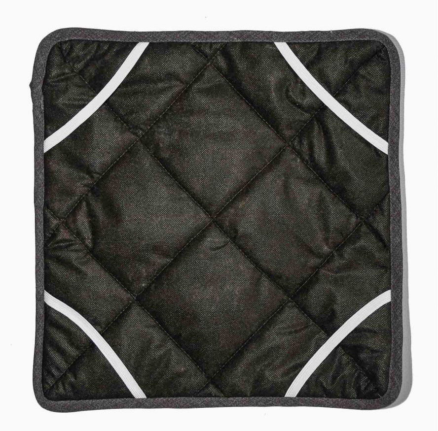 Мягкий и тонкий чехол в стильном однотонном дизайне черного цвета. Накладка на табурет выполнена из практичной ткани на основе хлопка и полиэстера, с наполнителем из ватина. Изделие крепится с помощью 4 резиночек по углам, делает сиденье табурета более удобным.
