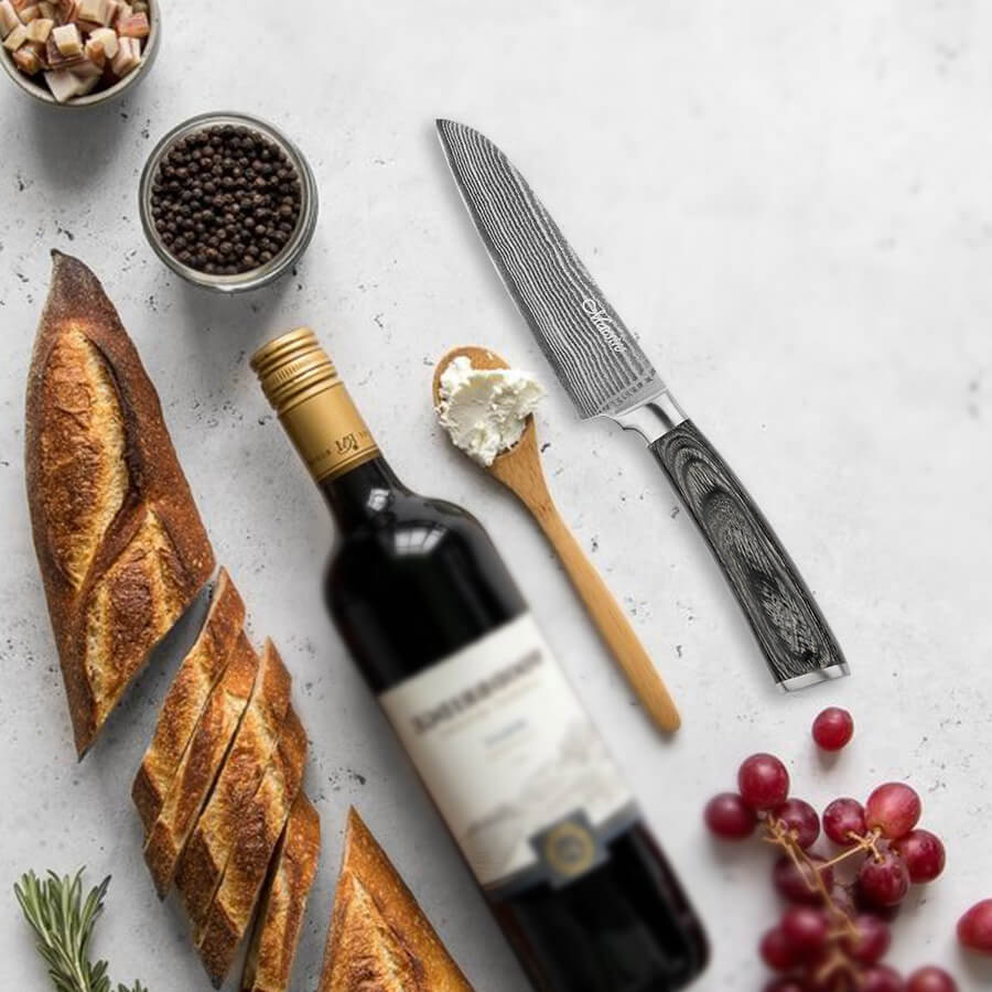 Нож сантоку представляет собой надежный универсальный инструмент, разработанный для разнообразных задач на кухне. Он выполнен из высококачественной дамасской стали, поэтому лезвие отличается узорами, долго сохраняет остроту заточки и имеет продолжительный период службы. Нож станет незаменимым для широкого спектра задач, включая нарезку, чистку и разделку продуктов.