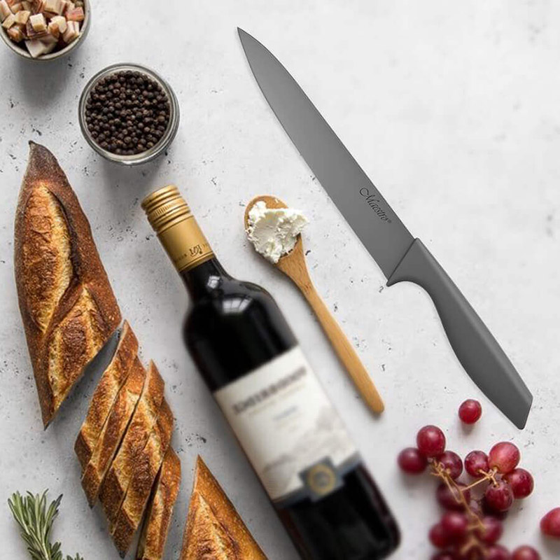 Нож универсальный 20см Maestro MR1433 выполнен в эргономичном дизайне. Лезвие из высококачественной cтали с керамическим покрытием имеет профессиональную заточку и дополнен удобной ручкой. Пластиковая ручка оборудована резиновыми вставками. Нож предназначен для комфортной работы с продуктами.