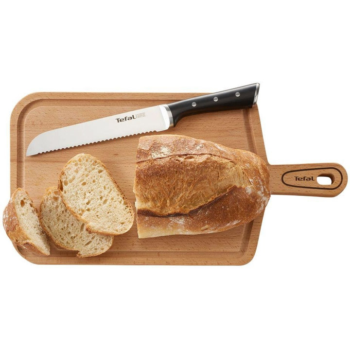 Нож для хлеба от Tefal с длинным зубчатым лезвием легко справляется с мягкой и хрустящей коркой, не кроша и не сминая выпечку. Специальная технология закалки при сверхнизкой температуре повышает прочность и устойчивость к коррозии. Эргономичная рукоятка удобно лежит в руке, обеспечивая контроль при работе. Инструмент сочетает эффективность, надежность и современный стиль. Отличный выбор для повседневного использования на кухне. Tefal — международный бренд, специализирующийся на инновационной кухонной посуде и бытовой технике. В его ассортимент входят сковороды, кастрюли, чайники, утюги и другие товары. Продукты марки обеспечивают высокое качество, удобство и используют современные технологии, становясь надежными помощниками на кухне. С 1956 года Tefal вдохновляет на кулинарные эксперименты.