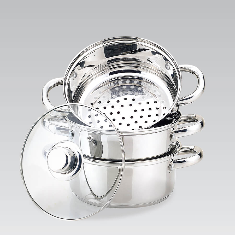 Пароварка-мантоварка Maestro MR2900-20. Пароварка из нержавеющей стали высокого качества. Толщина стенок 0,8 мм. Ручки из нержавейки прикуплены заклепками. Внутри есть шкала объема жидкости. Многослойное термоаккумулирующее дно посуды способствует равномерному распределению тепла при нагреве. Изделия подойдет для всех видов плит, в том числе и индукции. Можно мыть в посудомойке. Посуда Maestro приятно удивит отличными характеристиками, стильными внешними данными и прослужит долгие годы, прекрасно справляясь со своими задачами. Компания всегда своевременно реагируем на тенденции рынка и производим лучшие образцы посудного дизайна, по истине, качественного исполнения, способные удовлетворить самых взыскательных потребителей.