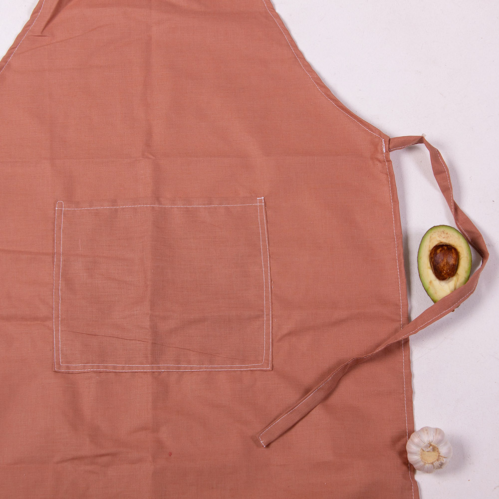 Кухонный однотонный фартук коричневого цвета с большим удобным карманом. Фартук замечательно впишется в кухонный интерьер, защитит вашу одежду во время процесса приготовления пищи.