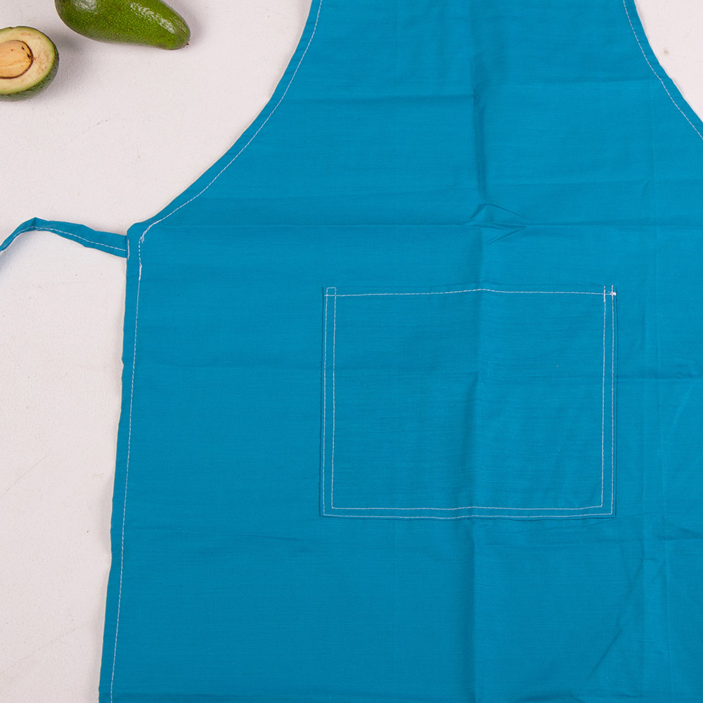 Кухонный однотонный фартук синего цвета с большим удобным карманом. Фартук замечательно впишется в кухонный интерьер, защитит вашу одежду во время процесса приготовления пищи.