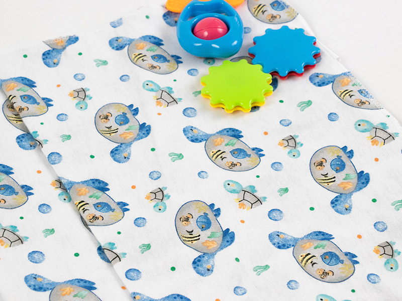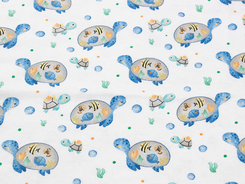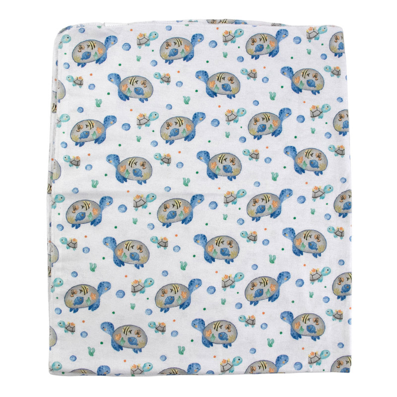 Мягкая и уютная пелёнка из фланели. Натуральный хлопковый материал обеспечивает комфорт и тепло, идеально подходит для чувствительной детской кожи. Пелёнка белого цвета, украшена милым детским принтом с черепашка. Подходит для пеленания, укрывания, использования в коляске или кроватке.