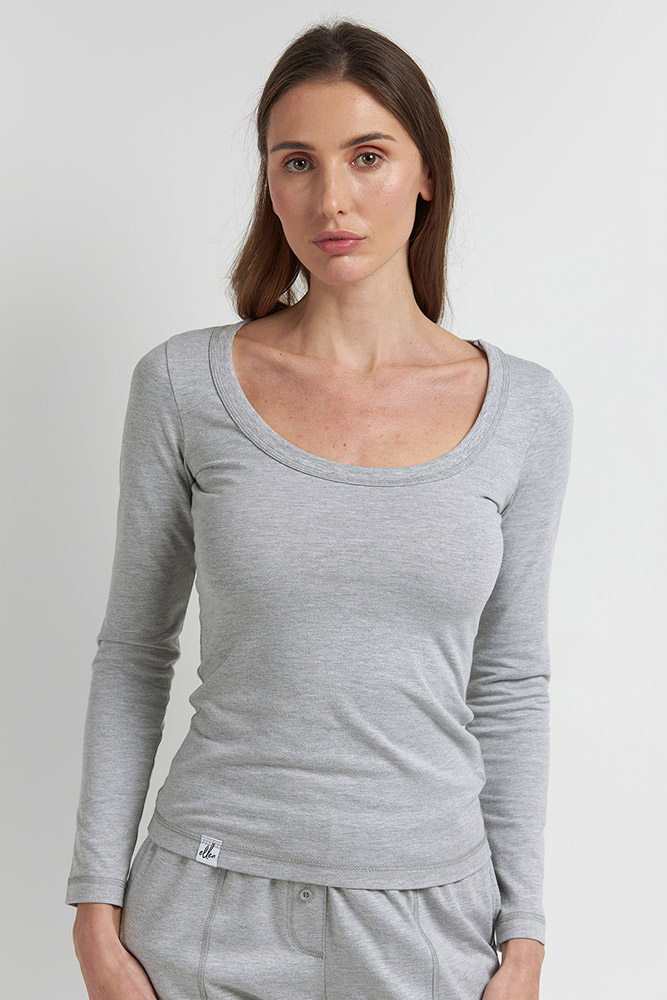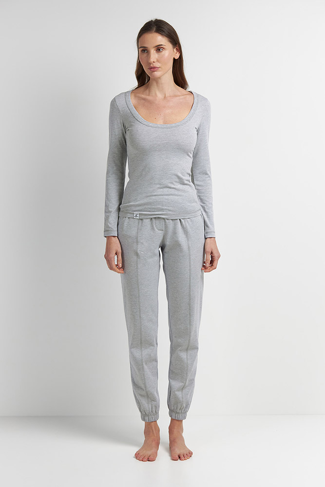Женский пижамный лонгслив однотонного серого цвета — комфортная и универсальная модель для сна и домашнего отдыха. Выполнен из мягкой хлопковой ткани кулир, благодаря чему материал приятный к телу, хорошо дышит и сохраняет форму после стирки. Лонгслив имеет удобный крой и длинные рукава, не сковывает движений и идеально подходит для создания уютного домашнего образа. Нейтральный серый оттенок легко сочетается с любыми пижамными брюками или шортами.
