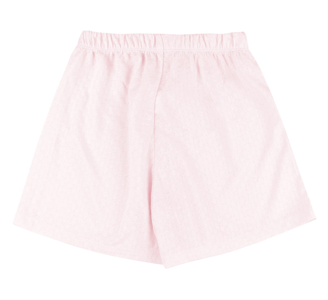 Детский пижамный комплект состоит из футболки и шортиков. Модель подойдет для девочки. Ткань из натурального хлопка мягкая и приятная на ощупь, хорошо пропускает воздух, обеспечивает комфорт и уют во время сна. Футболка белого цвета, спереди симпатичный принт. Шорты однотонные, розового цвета, с удобной резинкой на поясе.