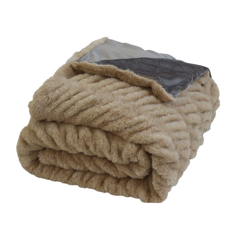 Двухсторонний плед-одеяло. Одна сторона бежевого цвета с рельефной фактурой, другая сторона серого цвета. Плед замечательно дополнит интерьер, а также станет отличным подарком для родных и друзей.