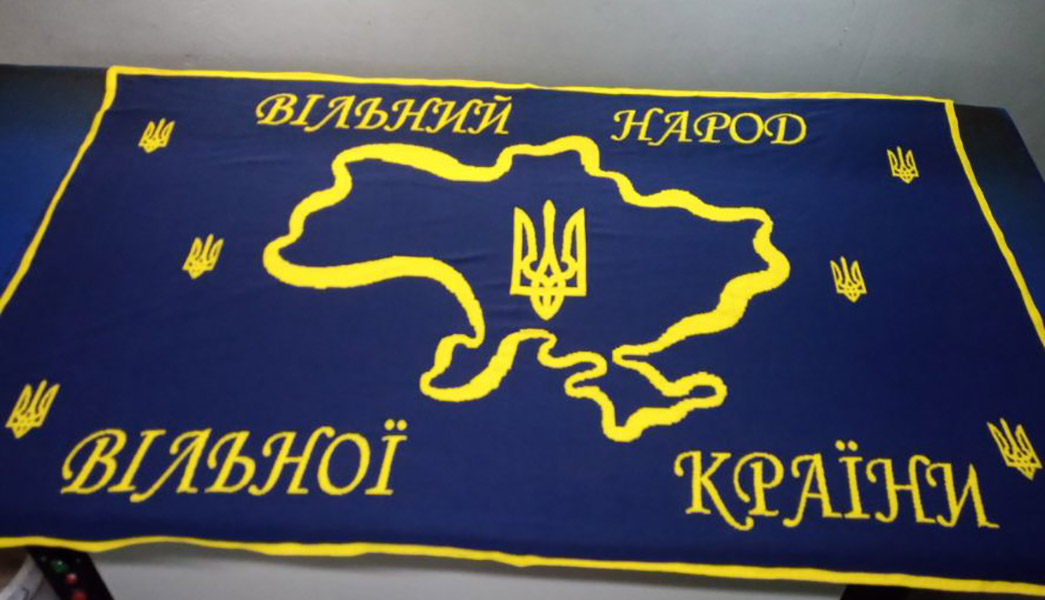 Мягкий вязаный плед в сине-желтой цветовой гамме с патриотическим рисунком. Плед выполнен из пряжи на основе хлопка и акрила. Плед станет отличным подарком для родных и близких, обеспечит комфортный отдых в любое время года.