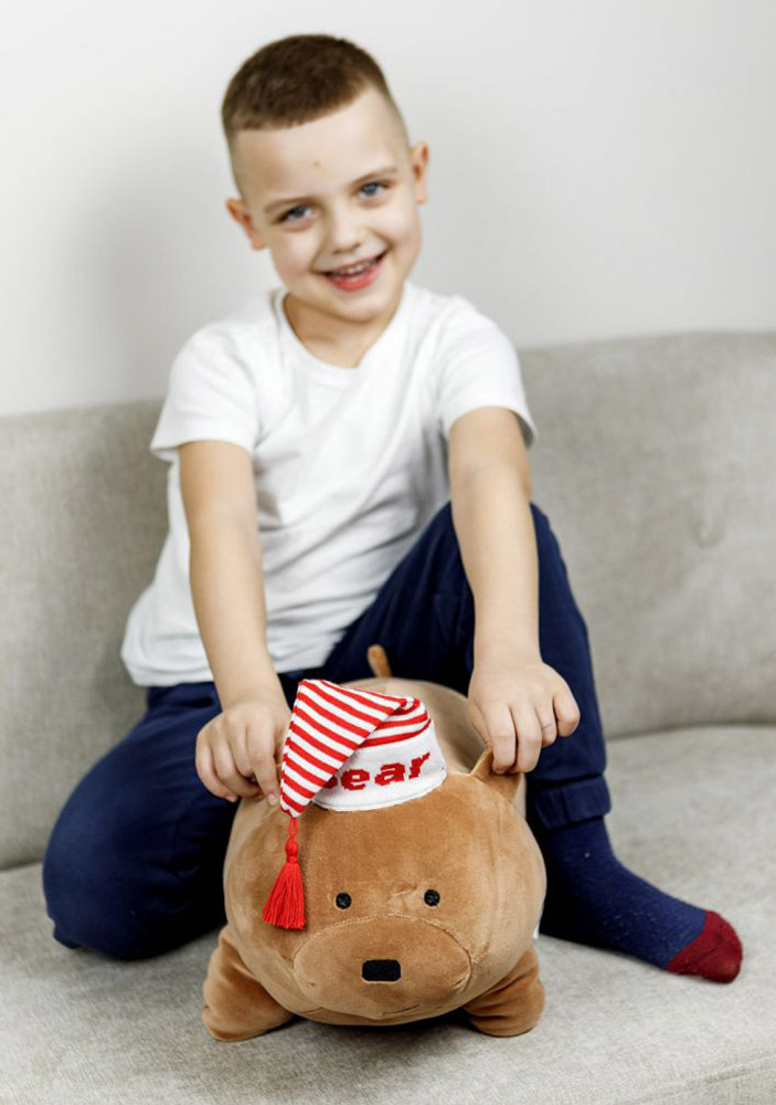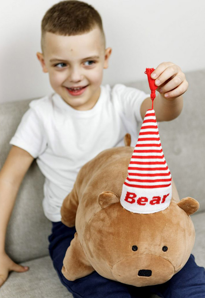 Подушка-валик выполнена в виде мишки с симпатичной мордочкой, шапочкой, ушками и лапками. Подушка мягкая и уютная, подарит комфортный и приятный отдых, а также улыбку и хорошее настроение. Изделие может использоваться в качестве антистрессовой подушки-обнимашки или для декорирования интерьера. Подушка обязательно понравится детям, любителям животных, а также тем, кто ценит милые и забавные вещи. Чехол подушки приятный на ощупь, выполнен из мягкой испанской ткани. В качестве наполнителя используется антиаллергенное полиэфирное волокно холлофайбер.