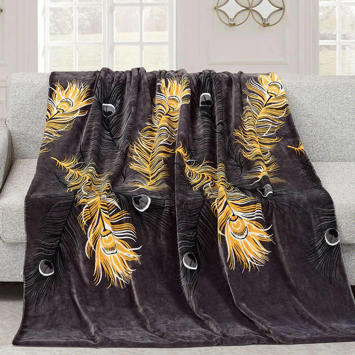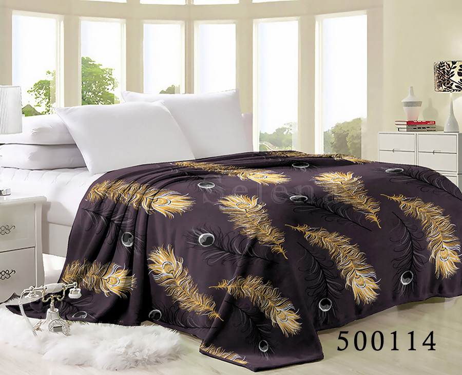 Замечательный мягкий плед коричневого цвета из флисового материала. Рисунок с перышками украсит интерьер, сделает комнату более уютной. Плед легкий, приятный на ощупь, дарит максимально комфортный отдых.